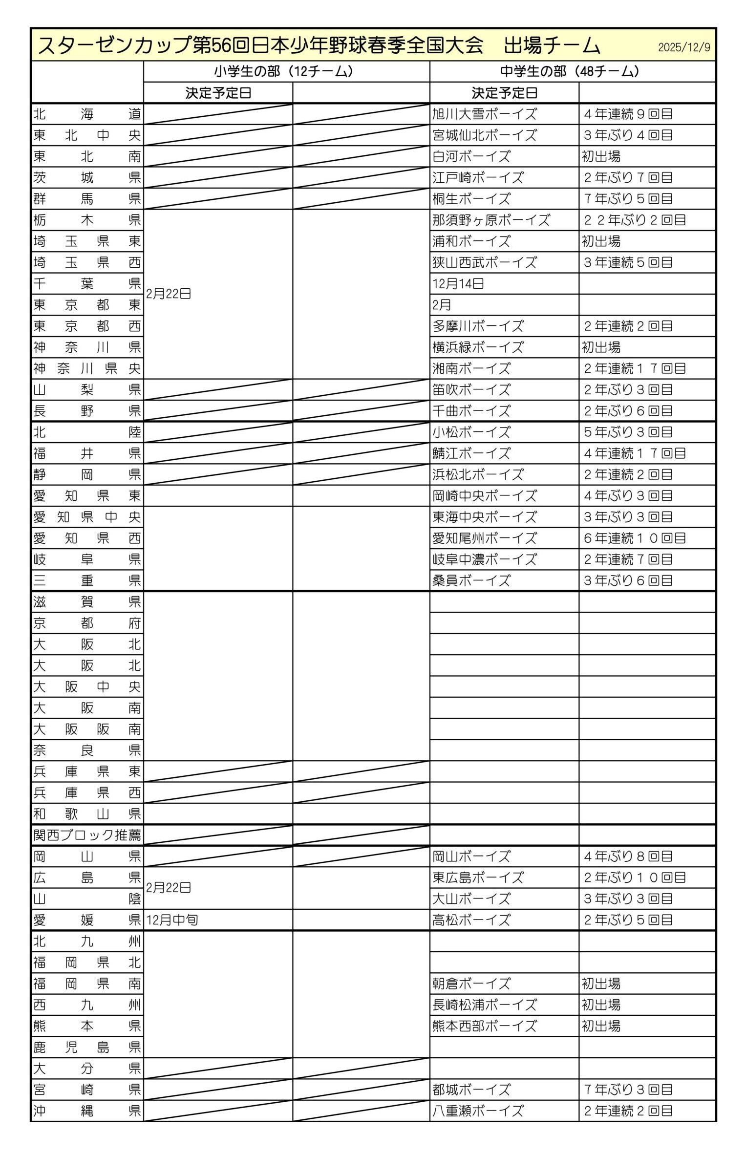 | 第55回 (令和7年) 結果をDL | 大阪都島ボーイズ(関西ブロック) | 稲沢中央ボーイズ(九州ブロック) |