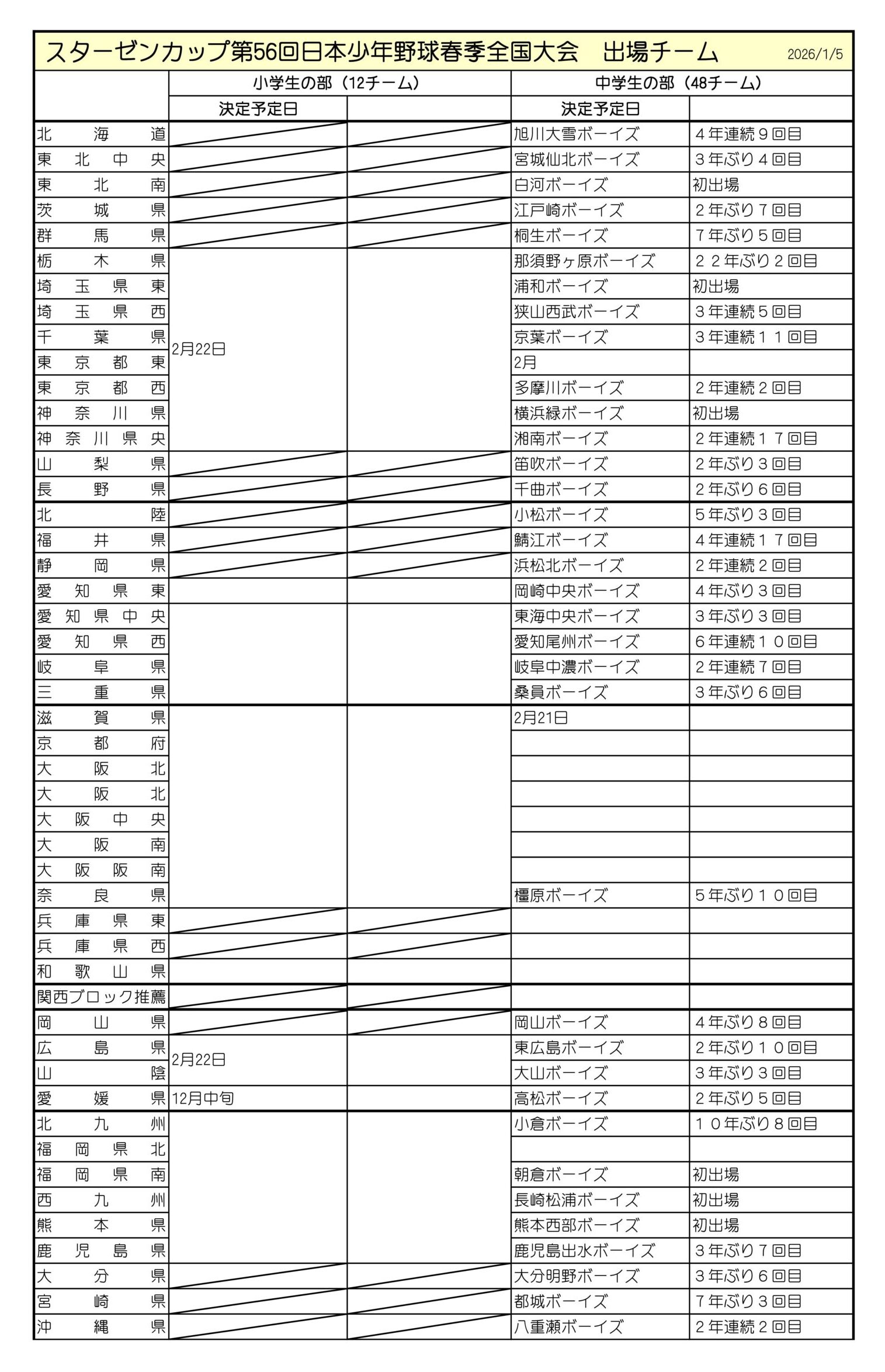| 第55回 (令和7年) 結果をDL | 大阪都島ボーイズ(関西ブロック) | 稲沢中央ボーイズ(中日本ブロック) |