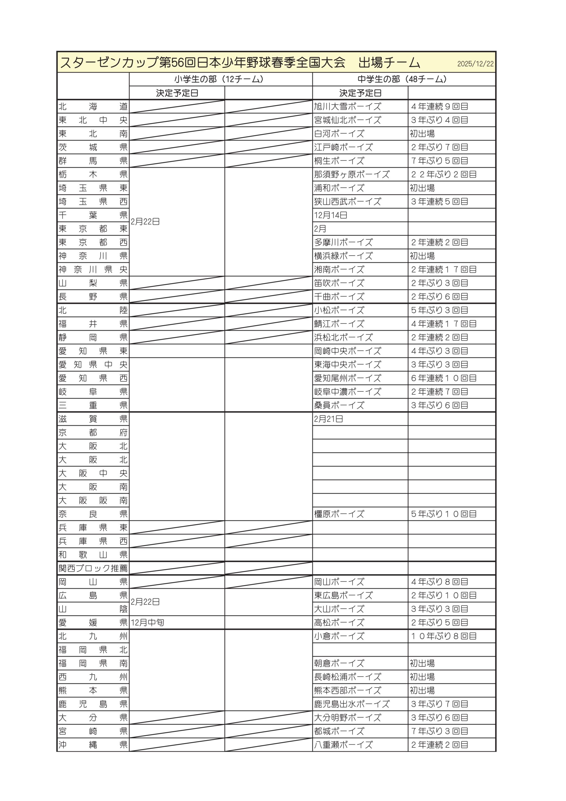 | 第55回 (令和7年) 結果をDL | 大阪都島ボーイズ(関西ブロック) | 稲沢中央ボーイズ(九州ブロック) |