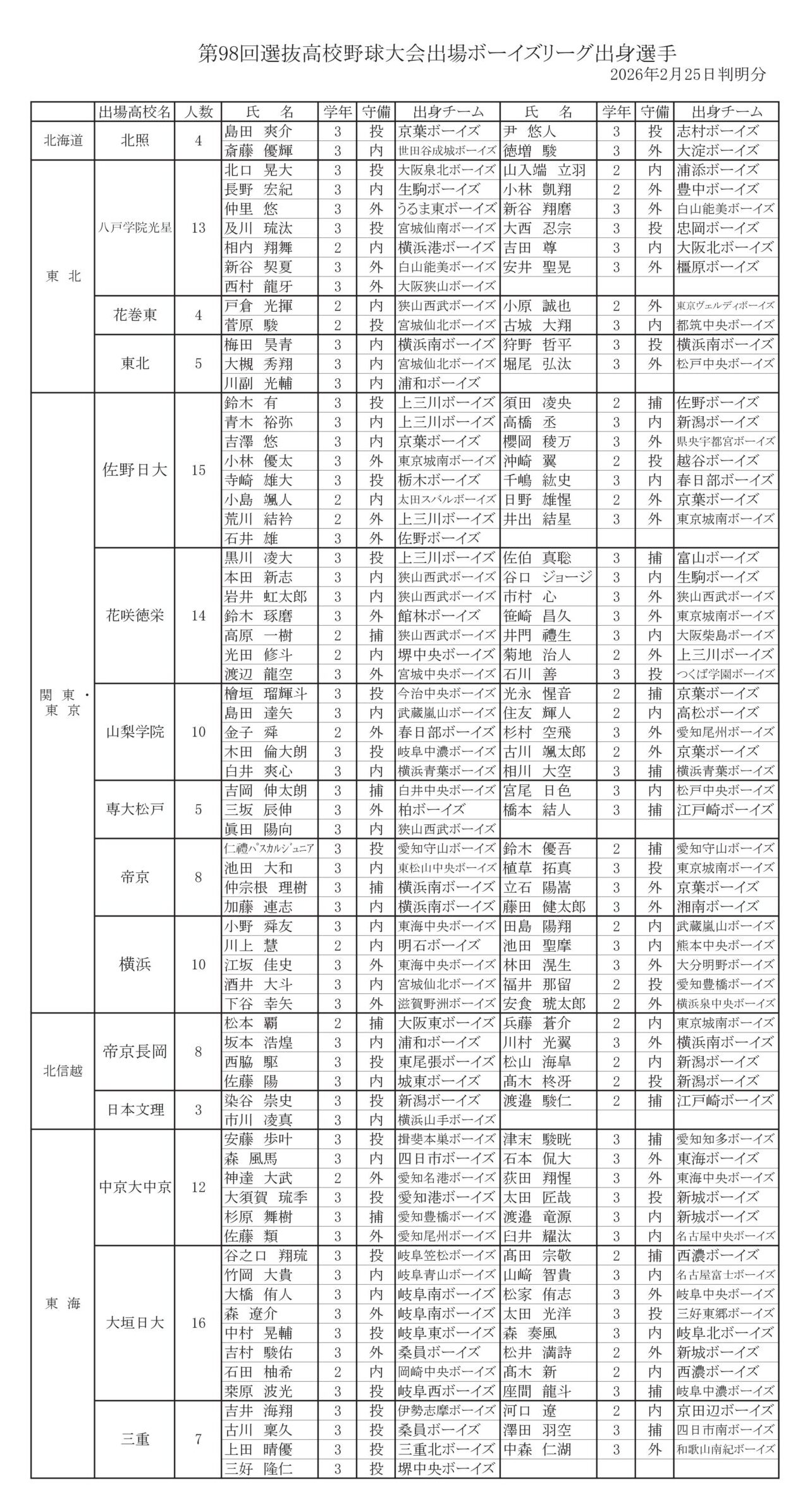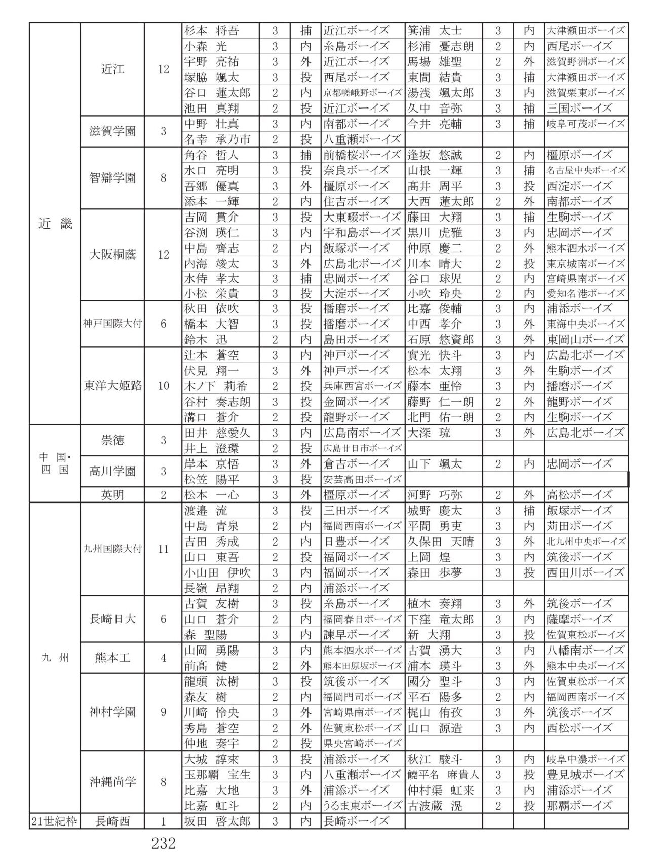 3. [選抜高校野球] ボーイズリーグ出身選手を掲載いたしました。